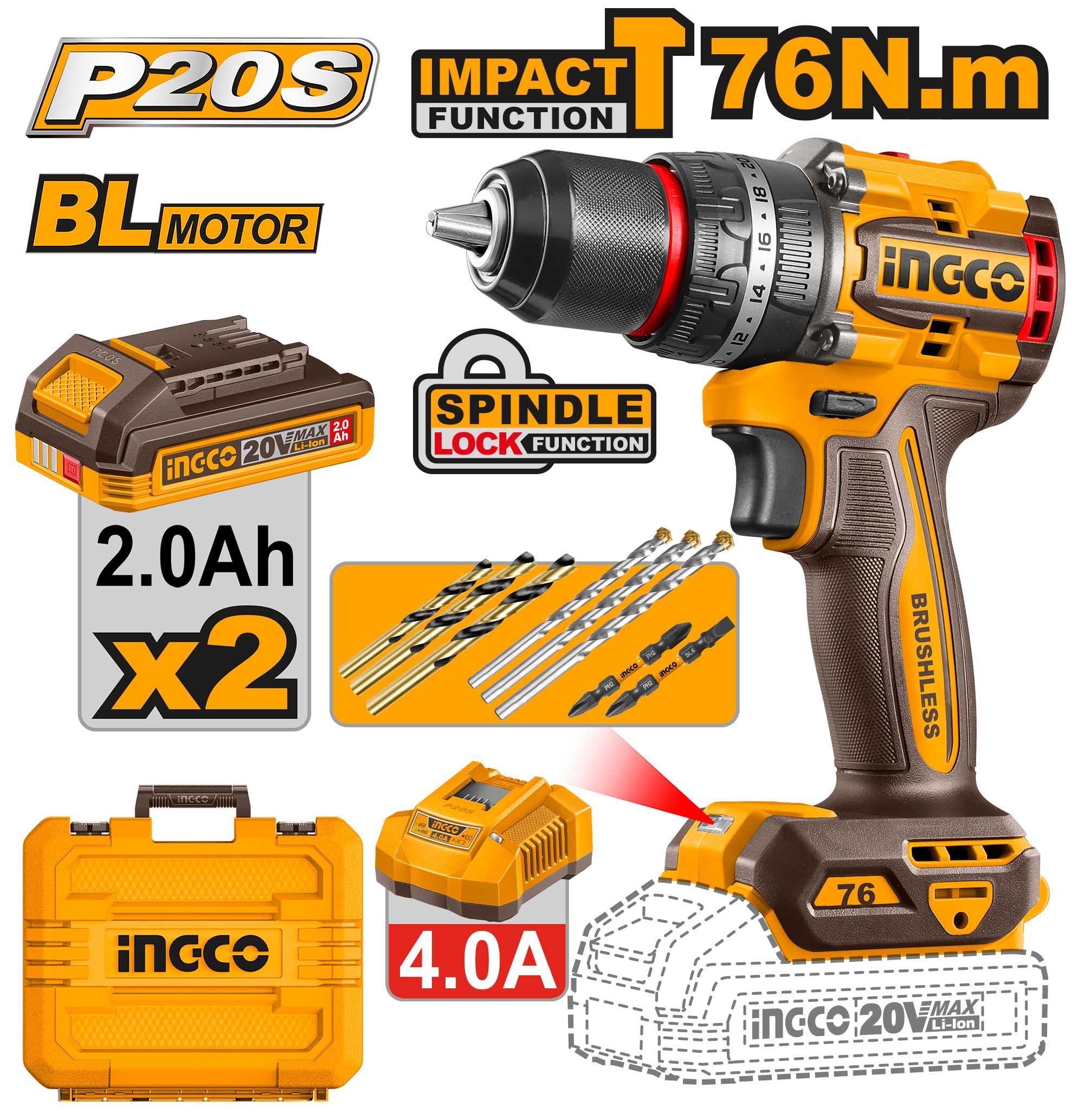 Compact Brushless Cordless Impact Drilllg...No-load speed: 0-500/0-2000rpmlg...Max impact rate: 30000bpmlg...Max torque: 76Nmlg...